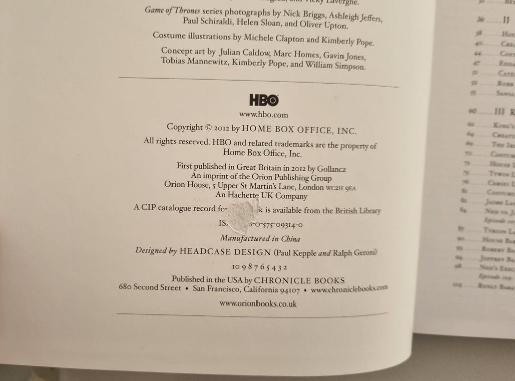 HBO’s Game of Thrones reigns as cable’s highest-rated series. This official Game of Thrones companion book gives fans new ways to enter this fictional world and discover more about the beloved (and reviled) characters and the electrifying plot lines. Hundreds of set photos, production and costume designs, storyboards, and insider stories reveal how the show’s creators translated George R. R. Martin’s best-selling fantasy series into the world of Westeros. Featuring interviews with key actors and crew members that capture the best scripted and unscripted moments from the first two sea¬sons, as well as a preface by George R. R. Martin, this special volume, bound in a lavishly debossed padded cover, offers exclusive access to this unprecedented television series.