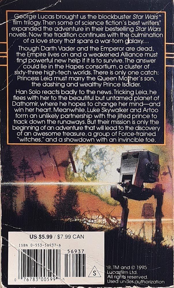 Han Solo confronts a new rival for Princess Leia's affections in the person of Prince Isolder, who will ally the sixty-three high-tech worlds of the Hapes Consortium with the New Republic, if Leia will marry him.