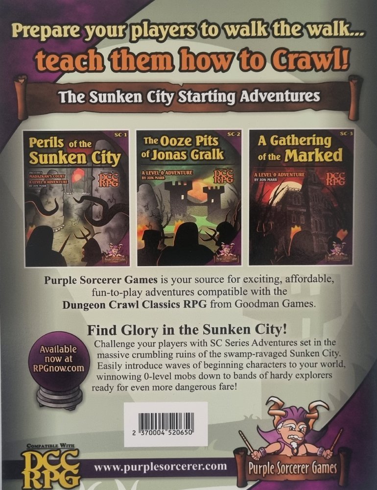 Do you dare re-enter the deadly swamps of the Sunken City? The hamlet of Slither's End needs your aid, but after meeting the bizarre locals, you might wonder if you need someone to protect you from Slither's End! Can you unravel the mysterious abductions plaguing the town? Do you chance trekking through the open swamp seeking answers when death lurks around every bend? And who is this Jonas Gralk that everyone mentions with grave suspicion? Answers await in The Ooze Pits of Jonas Gralk!